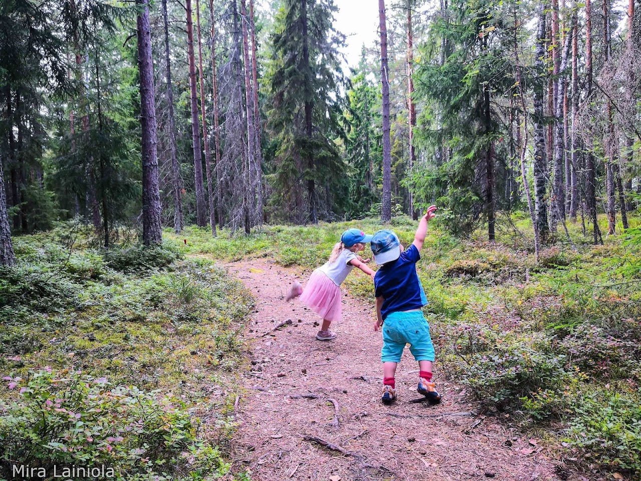 Eväshetken jälkeen metsäpolku kuljetti meidät tapionpöydälle. Tapionpöytä on kuusen erikoismuoto ja kuin luotu pieneksi piiloksi. Kuusen erilaisista kasvumuodoista voit lukea Metlan julkaisusta. Erikoisia kuusia on hauska bongailla metsäretkillä ja osa kaupungeista löytyvistä erikoismuodoista on rekisteröity luonnonmuistomerkeiksi.